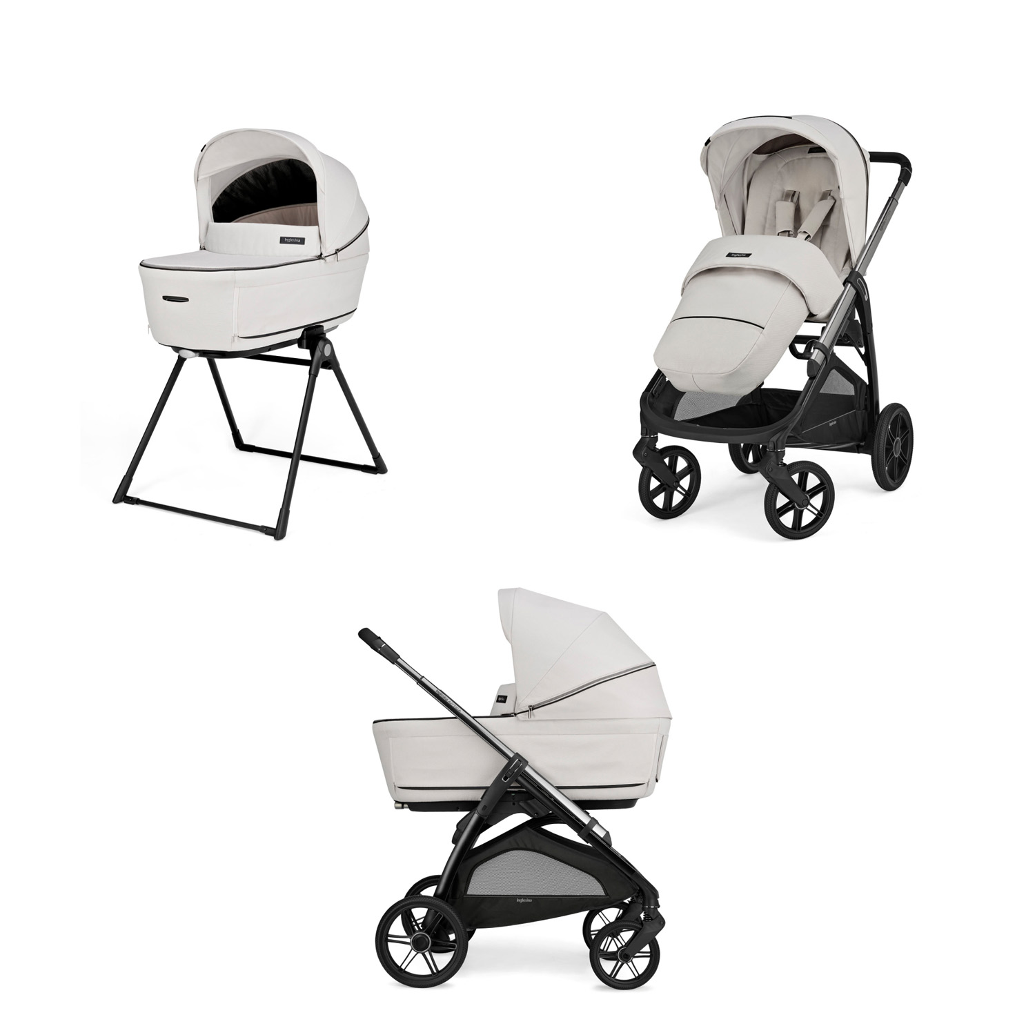 외출 시 사용한 스트롤러 프레임은 밖에 보관하고 집에서는 스탠드업에 캐리콧을 장착하여 청결하게 사용할 수 있습니다.