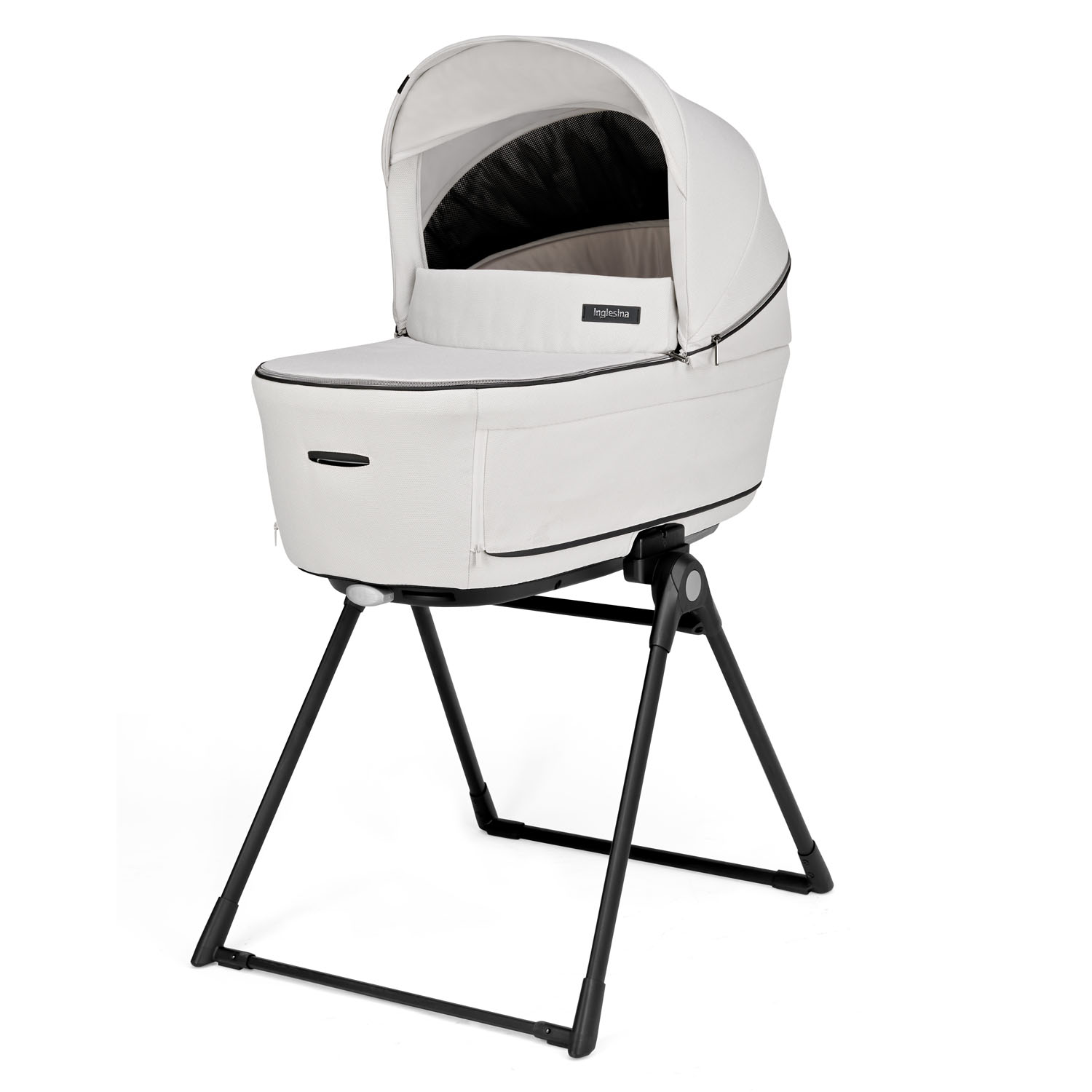 잉글레시나가 특허를 받은 독점 시스템 덕분에 앱티카 섀시는 시트가 장착된 상태에서도 한 손으로 양방향으로 열고 접을 수 있습니다. 접은 후에는 섀시가 스스로 세워져 패브릭 부분과 손잡이가 바닥에 닿지 않습니다.