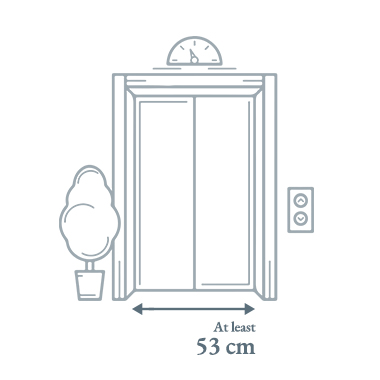 엘리베이터 이용 시 앱티카 XT 폭은 안전하게 엘리베이터에서 승하차가 가능하도록 설계되었습니다.